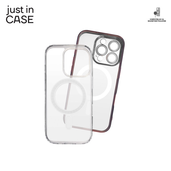 2u1 Extra case MAG MIX paket PINK za iPhone 16 Pro - u paketu su dve providne zaštitne silikonske maske za telefon kompatibilne sa MagSafe punjačem